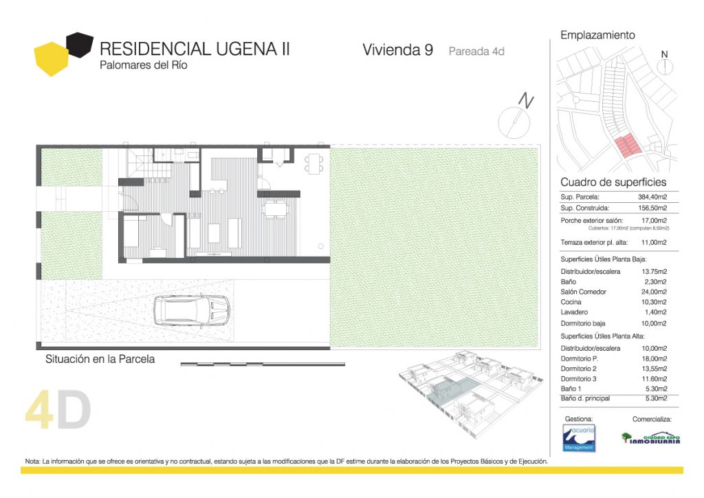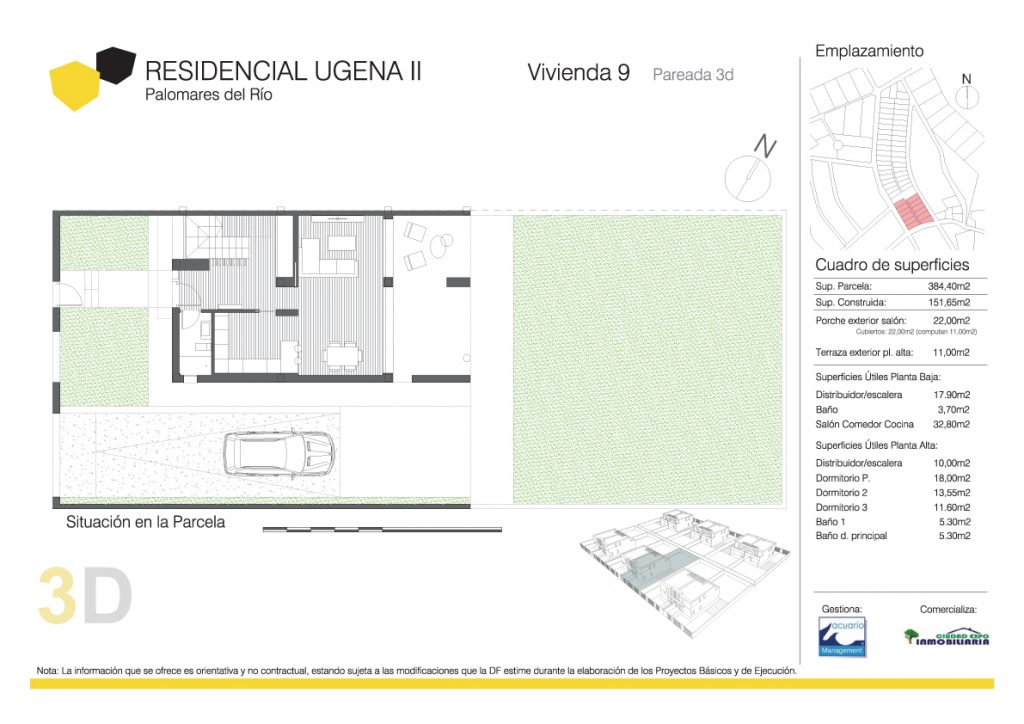 Residencial Ugena II se encuentra en Palomares del Río, Sevilla, en una zona privilegiada. Un enclave único dentro de la corona urbana de Palomares del Río. Disfrutarás de vivir en un entorno residencial con la proximidad de Sevilla, ya que solo se encuentra a tan solo 15 minutos del centro de la capital. Entorno más próximo: colegios, supermercados, centro médico, zonas comerciales y restaurantes, además de buenas salidas al tráfico rodado del municipio tanto a Sevilla como a las principales vías de acceso a la SE-40.