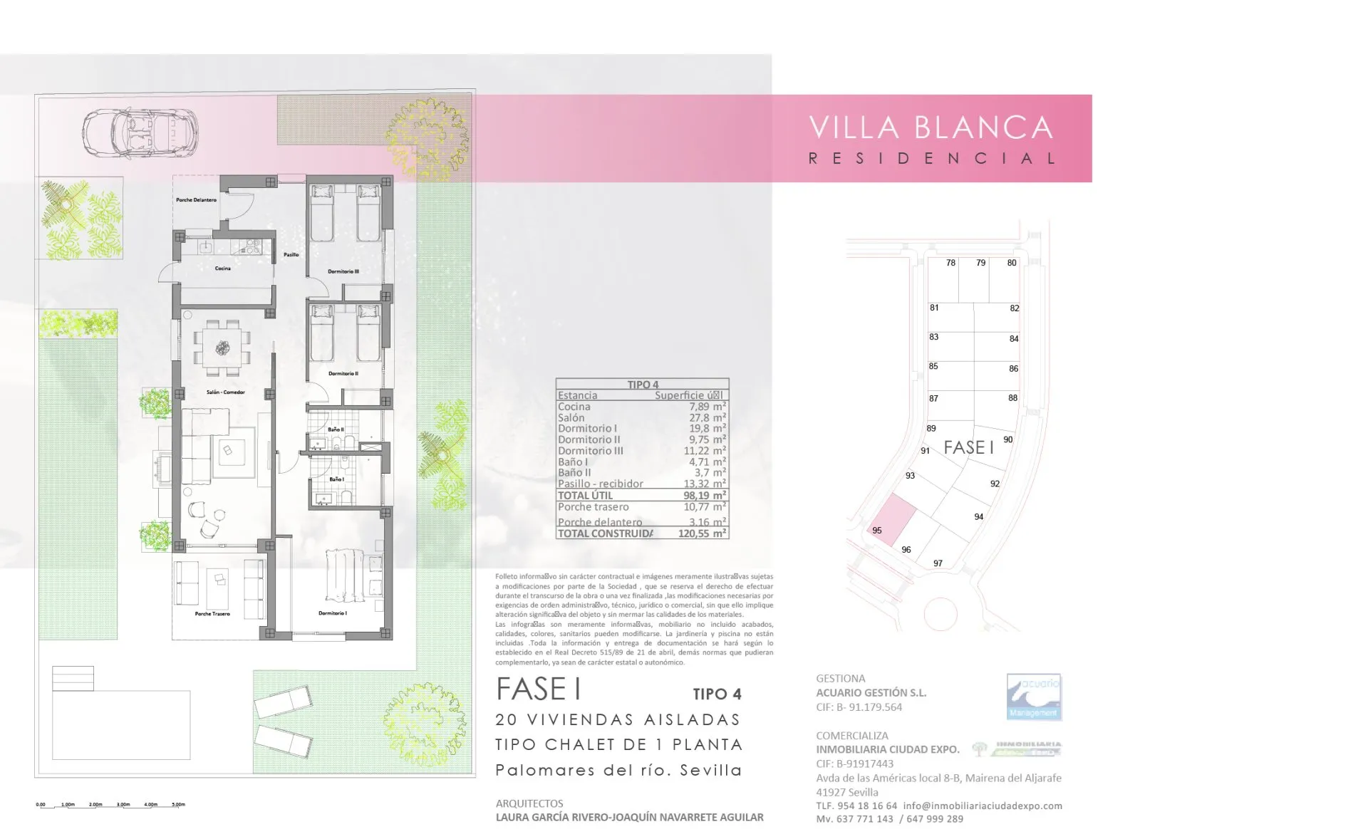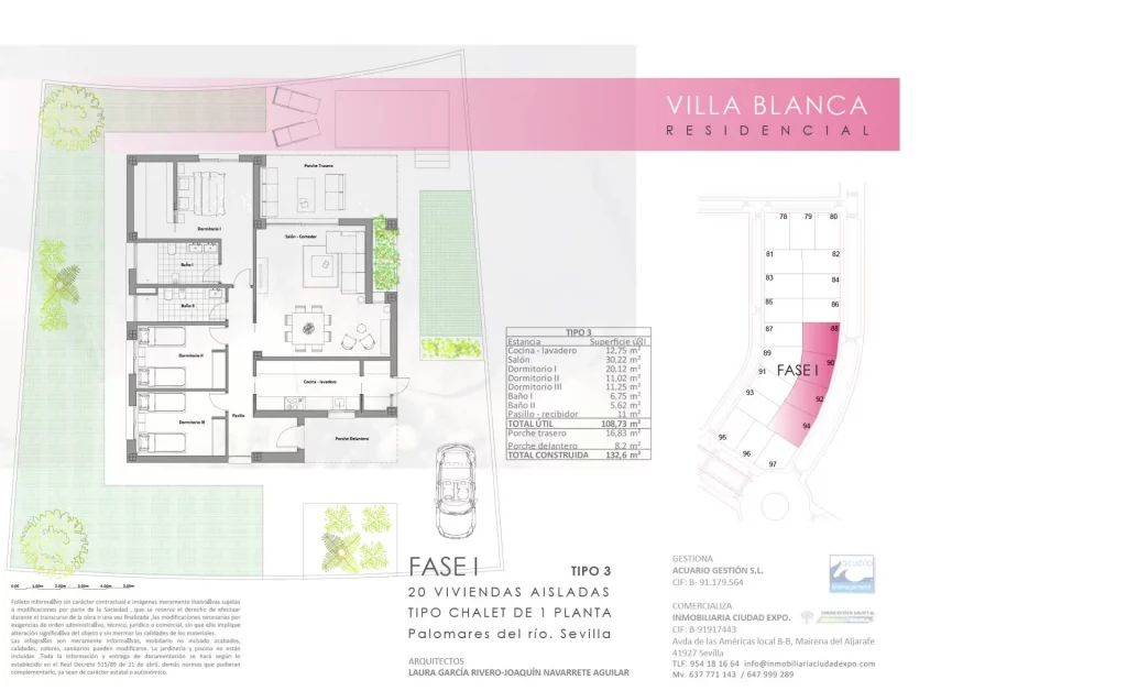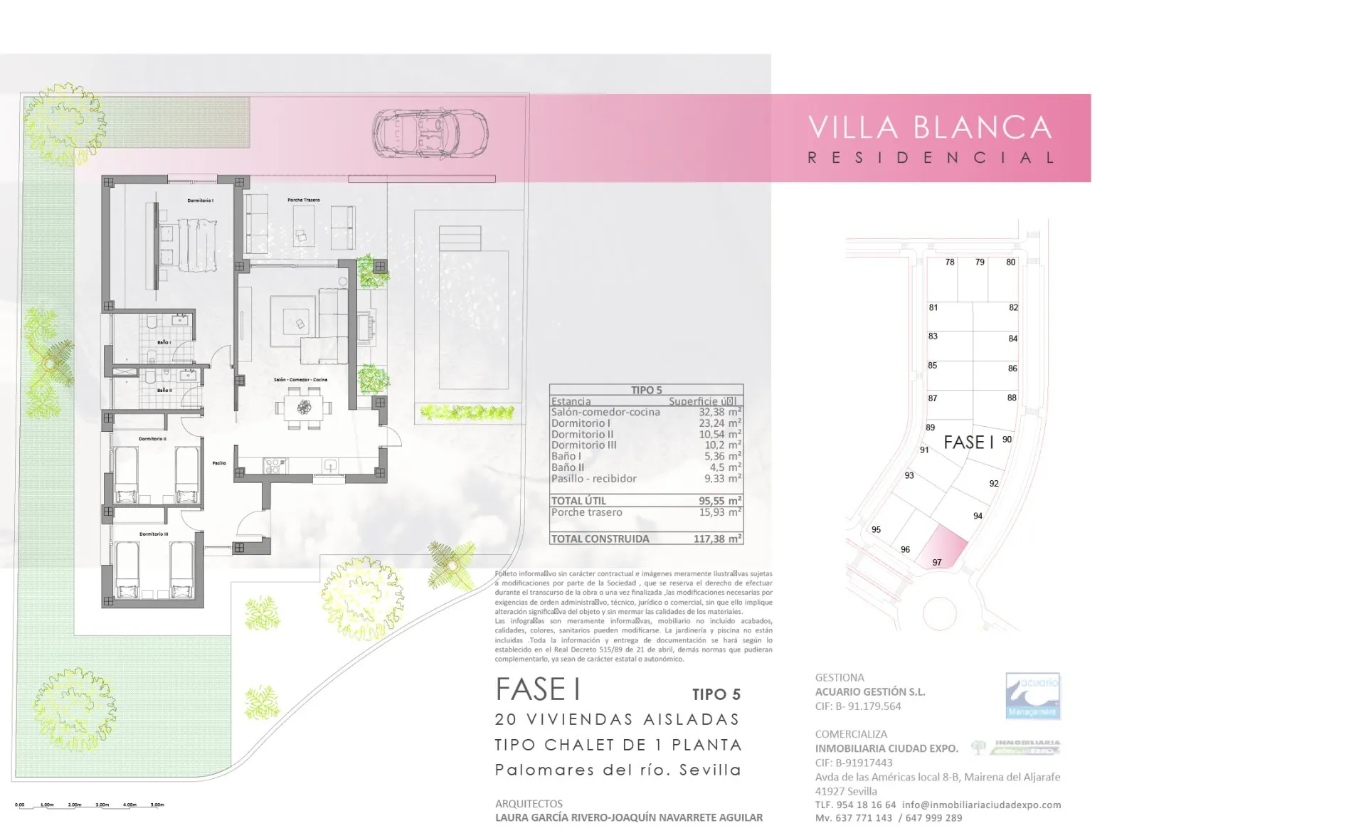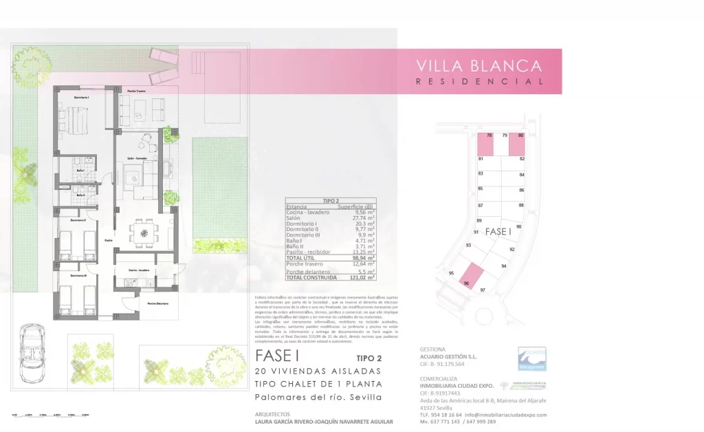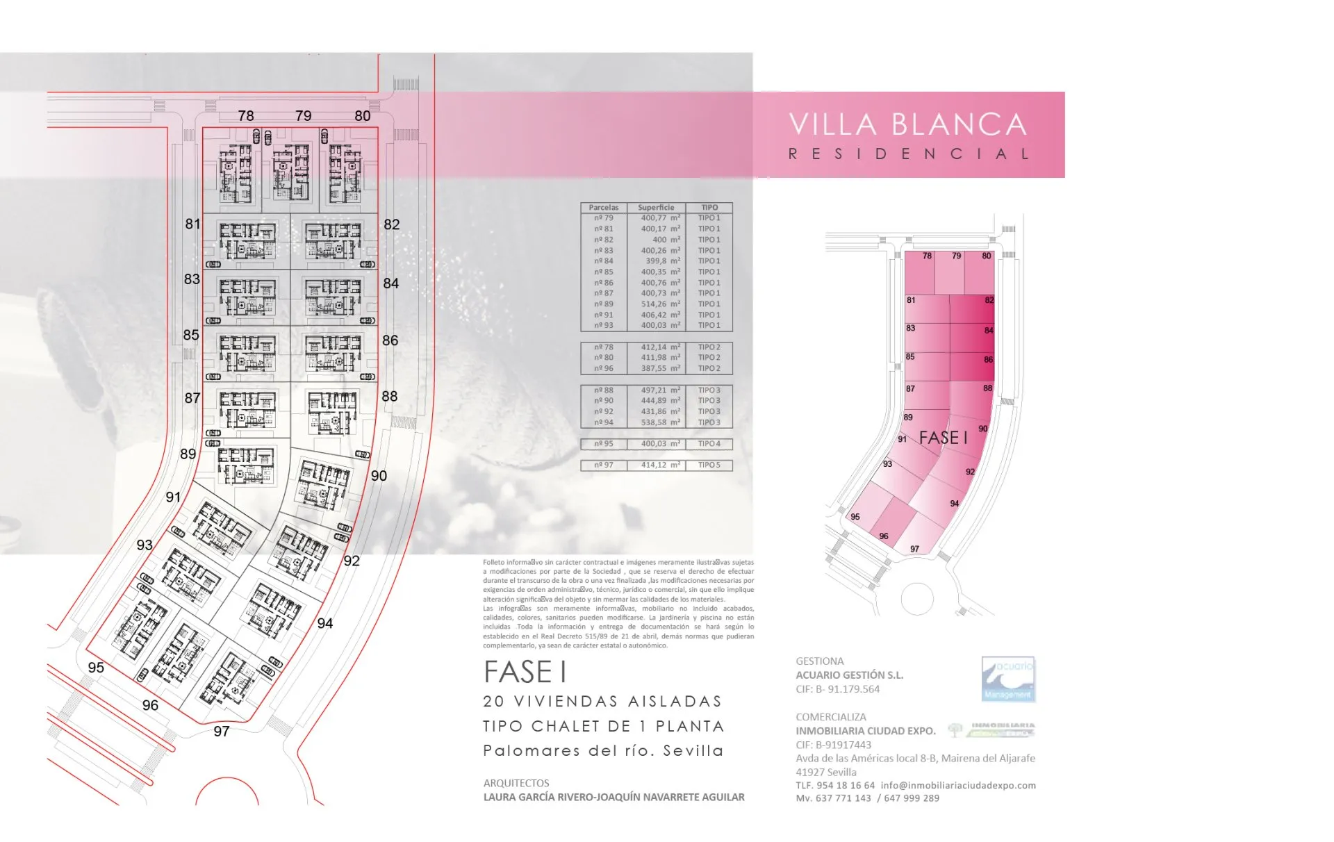 Definición básica de calidades en las viviendas situadas en la promoción Villa Blanca Residencial, de Palomares del Río, Sevilla, sector SUZ-PP-07. En una primera fase se construirán 20 viviendas unifamiliares aisladas de una sola planta.
